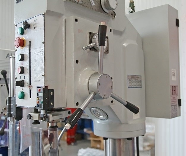 - Сверление производится подачей шпинделя вручную или механически. Станок имеет четыре механические подачи шпинделя. Ручная подача контролируется по плоской шкале или упору;