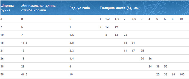 | Макс. толщина изгибаемого листа на длине, мм (при временном сопротивлении 450 Н/мм2) |