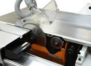 Поперечная линейка на форматном столе жестко фиксирована. Для угловых резов станок оснащен специальной линейкой, установленной на каретке. Благодаря этому поперечная линейка всегда сохраняет первоначальные настройки и не требует длительной регулировки для обеспечения точной геометрии раскраиваемых деталей. |