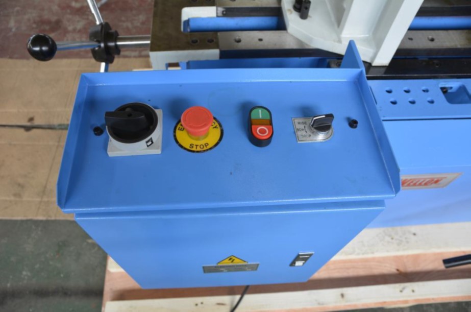 - Поворот тисков и настройка длины реза осуществляется вручную;