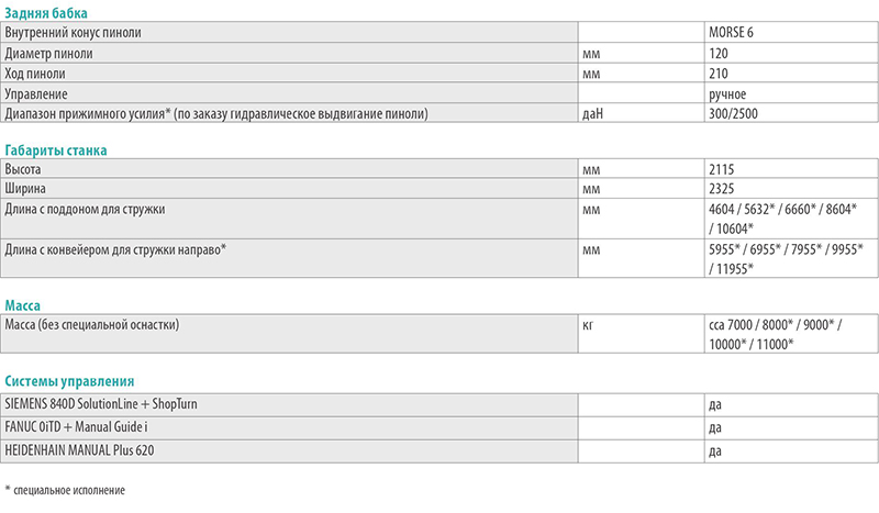 -широкий выбор дополнительной оснастки – гидравлический зажим, гидравлическое управление задней бабкой, привод вращающегося инструмента, закрывающая ось С, широкий диапазон длины обточки, большой выбор люнетов и зажимных плит.